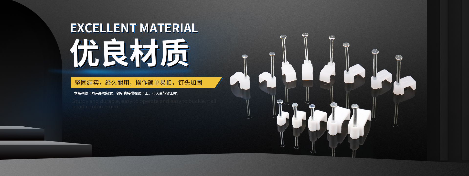 專業生產、銷售尼龍扎帶、鋼釘線卡、塑料膨脹管、定位片、壓線帽、纏繞管、扎絲(線)等系列產品